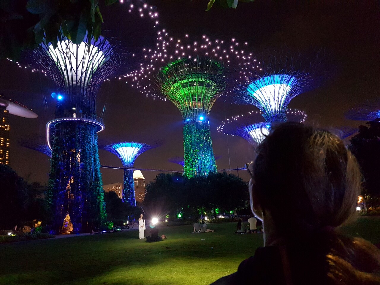 On our last day we spent some time exploring the old buildings and harbour front with the famous Merlion statue, before going back to the Gardens by the Bay supertrees 8.45pm sound and light show. This time I watched without filming the whole thing and up close and personal - standing directly under the trees instead of on a hill. Tired but happy we went to leave the gardens when we noticed a commotion nearby. We investigated and found out they were doing a full dress rehearsal of an acrobatic sound and light show for the park's 5th year anniversary the following week. In prime position we got to watch a Cirque du Soleil type performance among these fabulous trees, what a score :-) !!!