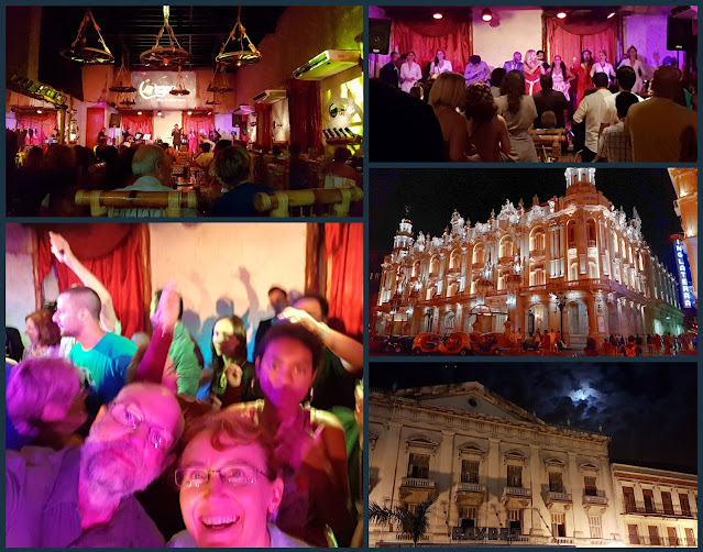 The next day we went for a walk down the main avenue marveling at the wonderful old building architecture and random artwork and painting occurring down the middle. That night we went to watch the iconic show at the Buena Vista Social Club. The $30 ticket included 2 drinks and a snack (cheese, nuts and olives). The show was extensive and energetic including a fabulous instrumental bit and several times where they got everyone up dancing, including a conga line and finishing with us all dancing on the stage. We walked home safely at midnight, a 30 minute walk.